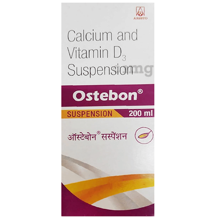 Ostebon Suspension is a calcium and vitamin D3 supplement that is used to support bone health and treat conditions related to calcium and vitamin D deficiency. It is available in a 200ml bottle. It is used to treat vitamin D and calcium deficiency, which can lead to conditions like osteoporosis or weak and brittle bones.
