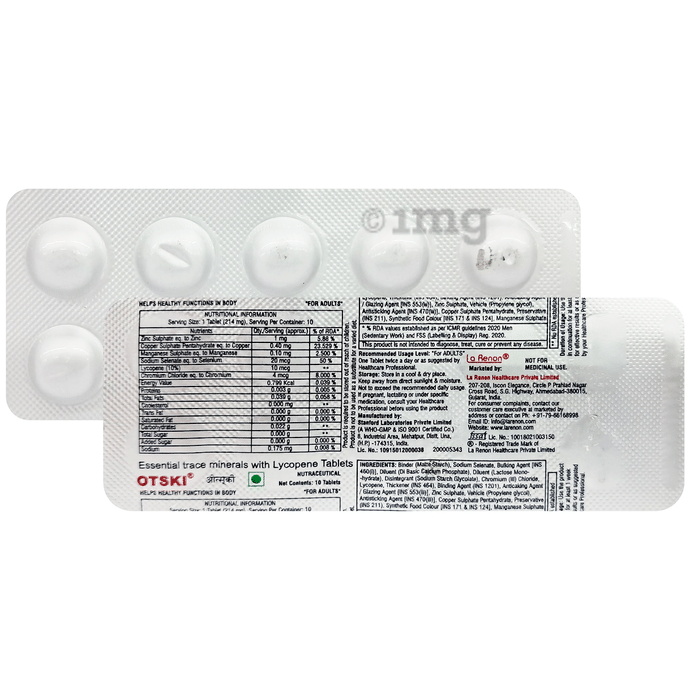 Otski Tablet is a nutritional supplement that helps manage trace element deficiency. This tablet is loaded with 5 trace elements viz. chromium, copper, manganese, zinc, and selenium that helps maintain optimal physiological functions in the body.