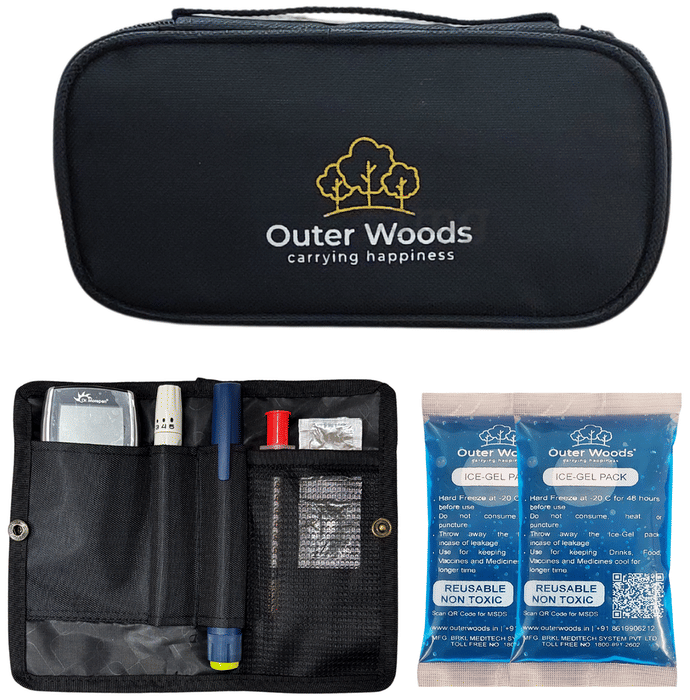 Thoughtfully Designed Insulated Insulin Bags to accompany you at work, leisure/business trips, outing and picnic. Say goodbye to those annoying cold boxes and expensive cooler bags to carry your daily dose of insulin. Outer Woods Insulated Insulin Cooler Bags ensures extended cool temperature required for your insulin and medication. Dedicated Ice Gel Pockets, Removable Pouch and Thickly Padded Cooler Bag keep the contents safe and cool for up to 6 Hours.