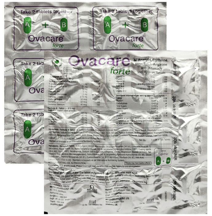 Ovacare Forte Tablet is a health supplement for women enriched with essential micronutrients like myoinositol, d-chiro inositol, n-acetyl cysteine, and l-arginine. The formula also contains vitamin B12, folic acid, and other essential antioxidants.