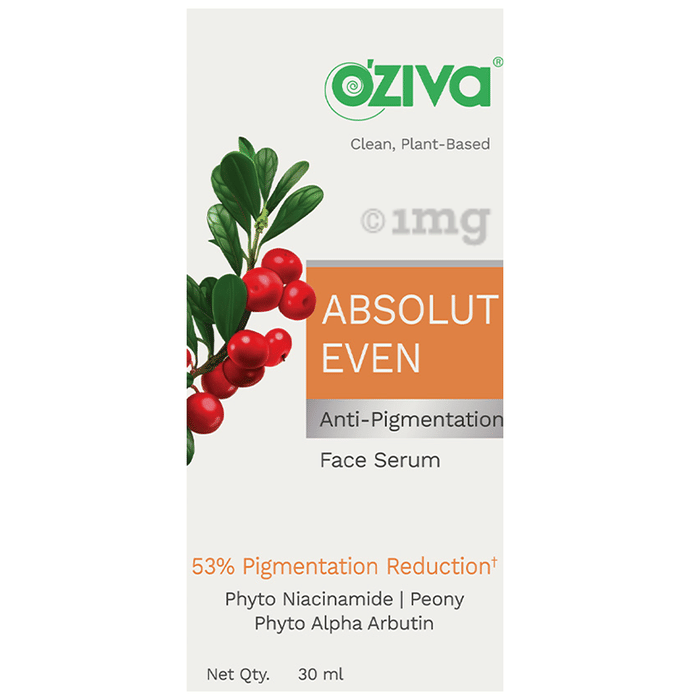 - Plant-Based Face Serum for Pigmentation, Dark Spots and Glow: OZiva Absolut Even Anti Pigmentation Face Serum is a clean face serum which can help manage pigmentation. Powered by Phyto Niacinamide (Tulsi Extract), Phyto Alpha Arbutin (Uva Ursi Extract), White Peony, Aloe Vera, and Rosemary, this serum for pigmentation and dark spots can help to fade discolouration, maintain clarity, and restore a brighter, more even skin texture
