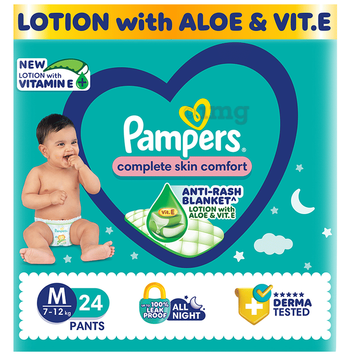 Pampers Complete Skin Comfort Pants Anti-Rash Blanket Medium Lotion with Aloe Vera