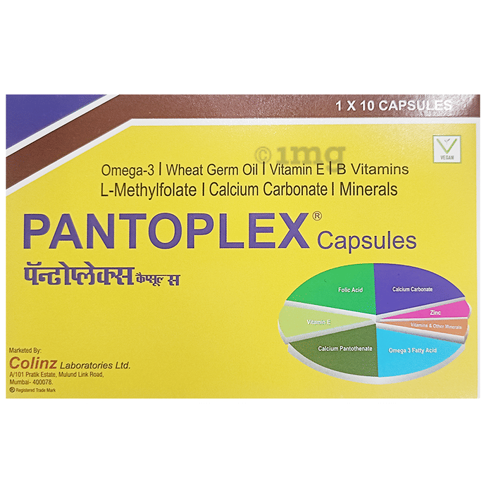 Pantoplex Capsule is a multivitamin and multimineral supplement enriched with calcium and omega-3 fatty acids, which contains all the essential nutrients required to stay fit and maintain a healthy lifestyle. It helps boost immunity and strength. This supplement can help maintain eyes, brain, heart, and bone health. It contains key nutrients that are important to fill dietary gaps.