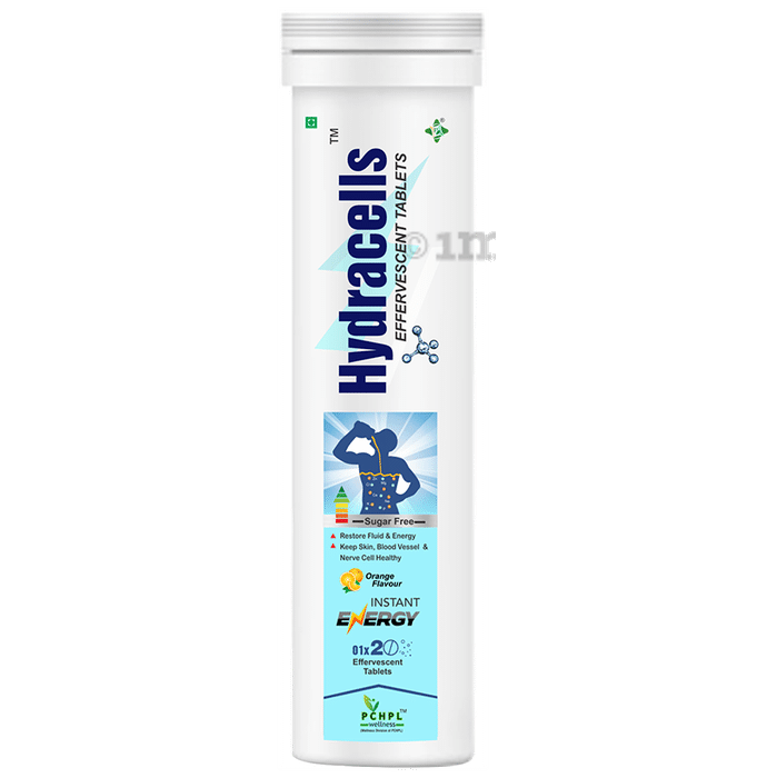 PCHPL Wellness Hydracells Effervescent Tablet Orange is infused with the goodness of 4 essential minerals and 2 vitamins. Hydracells is an ideal choice for completing the day-to-day nutritional demands of the body. Vitamin C boosts immunity and improves skin health. Vitamin B12 keeps the blood and nerve cells healthy. Potassium (potassium chloride) helps regulate fluid balance, muscle contractions, and nerve signals. Calcium is important for heart, nerve, and muscle function and maintains bone health. Magnesium and sodium play a role in managing blood flow.