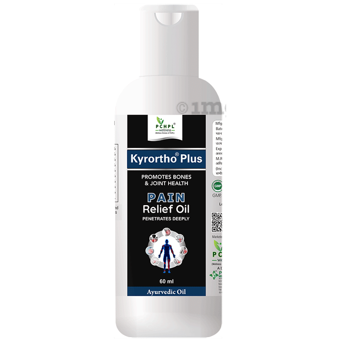 PCHPL Wellness Kyrortho Plus Pain Relief Oil may help to serve a dual purpose by facilitating pain relief and offering immediate respite from conditions like muscle pains and backaches. It is designed for rapid absorption, its formula may help in addressing discomfort across the back, neck, shoulders, legs, and joints, which may result from muscle and joint issues. This massage oil may help to improve joint flexibility while providing long-term relief from pain and discomfort. It is made up completely of organic materials.