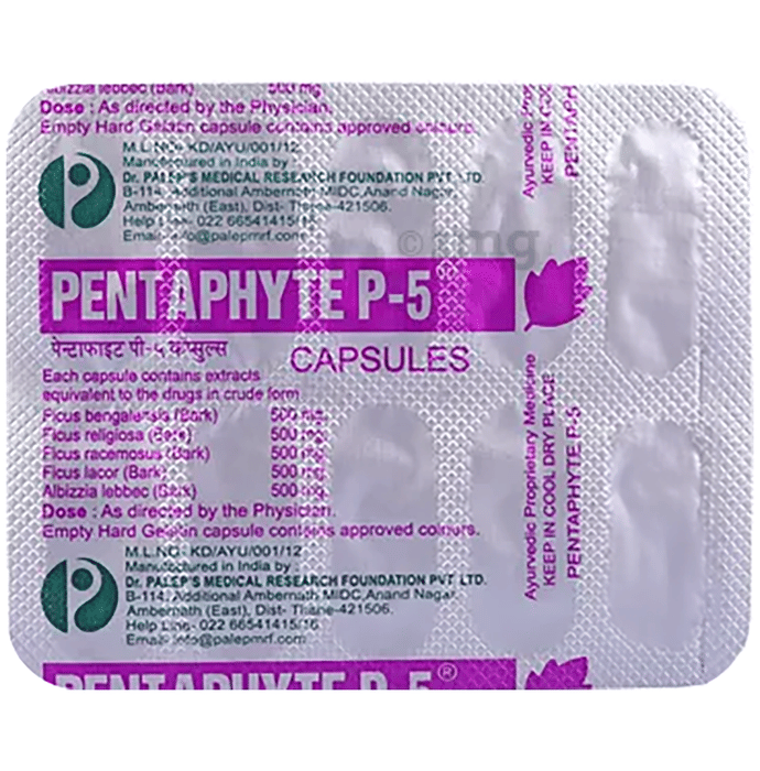Pentaphyte P-5 Capsule is an Ayurvedic medicine formulated with barks of Ficus plants. It is used under medical supervision.