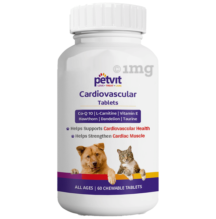 Petvit Cardiovascular Tablets supports cardiac health in dogs and cats by combining the antioxidant potential of Co-Q 10 with other cardio-protective nutrients and botanicals. Its promotes oxygen utilization and blood circulation, while enhancing physical stamina in small animals. In our product high-quality, natural ingredients – such as L-Carnitine, Taurine, Hawthorn Leaf/Flower Extract, Co-Q 10 (Coenzyme Q10), Organic Dandelion Root, Vitamin E and Magnesium that provide comprehensive cardiovascular support to help maintain healthy blood flow, cardiac muscle contractions, heart rhythm, and vascular smooth muscle tone.