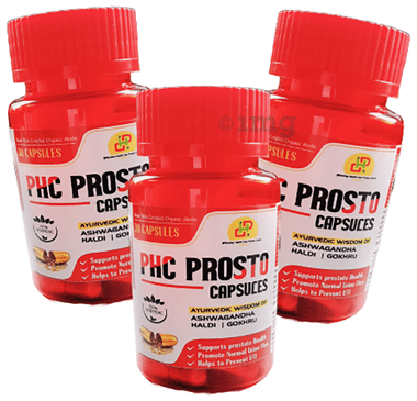 PHC Prosto Capsules (30 Each) is an Ayurvedic proprietary formulation that combines a blend of botanical and mineral ingredients in a 650 mg capsule format. The formulation includes Gokhru (Tribulus terrestris), Ashwagandha (Withania somnifera), Haldi (Curcuma longa), Pumpkin seed (Cucurbita pepo), Kasmard (Cassia occidentalis), Puga (Areca catechu), Varuna (Crataeva nurvala), Punarnava (Boerhaavia diffusa), Kachnar (Bauhinia variegata), Khadir (Acacia catechu), and Yashad bhasma. These components may assist in supporting prostate health and maintaining urinary flow. The capsule form allows for convenient daily use as part of a wellness routine, with each ingredient contributing to the overall composition that can help support urinary comfort and general well-being.