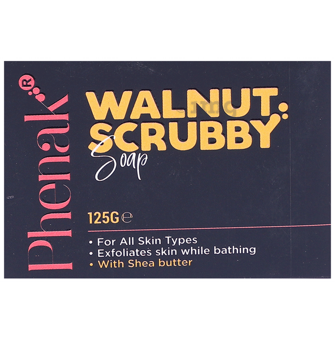 Phenak Walnut Scrubby Soap is a handmade exfoliating soap crafted with walnut shell powder, coconut oil, and shea butter, providing a luxurious cleanse for irresistibly smooth and refreshed skin.