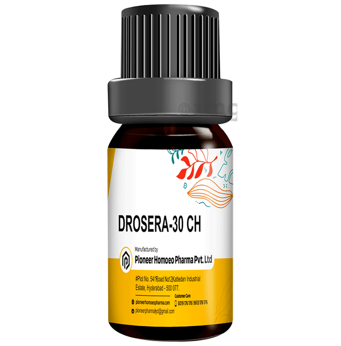 Pioneer Pharma Drosera Globules Pellet Multidose Pills 6 CH is a homeopathic solution which effectively addresses multiple health conditions. It has a marked effect on respiratory issues including infection of the larynx and lungs with severe expectoration and whopping cough. Drosera is also indicated for joint pains and inflammation. Gastric irritation and glandular infections are also taken care of.