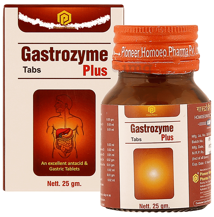 Pioneer Pharma Gastrozyme Plus Tab is a homoeopathy blend that addresses chronic and acute gastrointestinal issues. It eliminates bloating and belching problems. It may also be beneficial in case of spasms in the stomach.