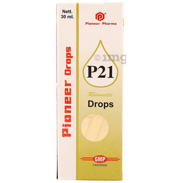 Pioneer Pharma P21 Rheumatic Drop is a homoeopathic medicine used in the treatment of rheumatoid arthritis that causes pain in joints, tendons, ligaments, bones and muscles. Unlike the wear and tear damage of osteoarthritis, rheumatoid arthritis affects the lining of joints causing pain.