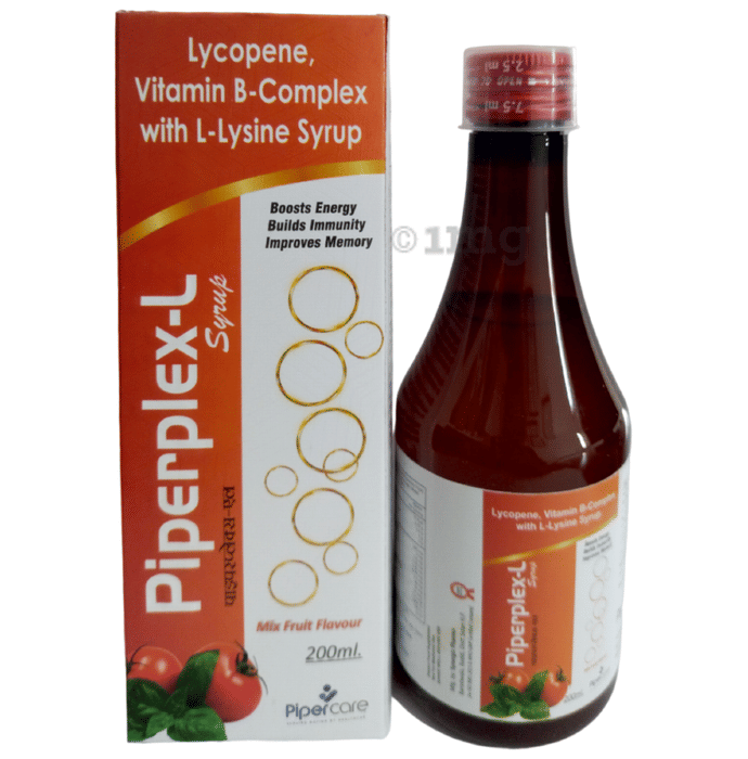 Piperplex-L Syrup is a combination of lycopene, vitamin B-Complex with L-Lysine. It comes in a delicious mix fruit flavour. It takes care of your well-being. It supports your immune health.