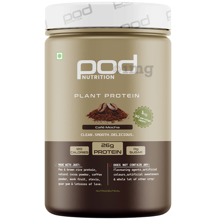 Pod Nutrition Plant Protein Powder Cafe Mocha is a plant-based protein supplement designed to support clean and effective nutrition. Made with a Signature Protein Blend of Pea Protein Isolate and Brown Rice Protein Isolate, it delivers 26g of protein and 4.7g BCAAs per serving. This supplement is sweetened with stevia and monk fruit, and includes natural cocoa and coffee powder for a rich taste. Crafted for those looking to supplement their protein intake without added sugars. It can offer a smooth and delicious option for health-conscious individuals.