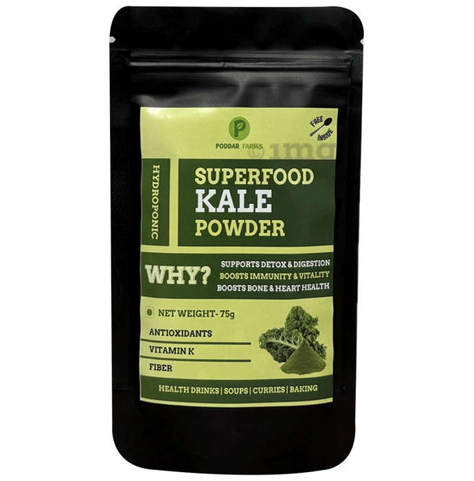 Poddar Farms Dehydrated Kale Powder is a versatile and nutrient-rich addition to your daily diet. Made from 100% hydroponically grown kale leaves, this powder is free from emulsifiers, additives, preservatives, artificial colours, or flavours, ensuring purity and quality in every spoonful. Certified organic, vegan, non-GMO, and gluten-free, it meets the highest standards of dietary preferences and health-conscious consumers.