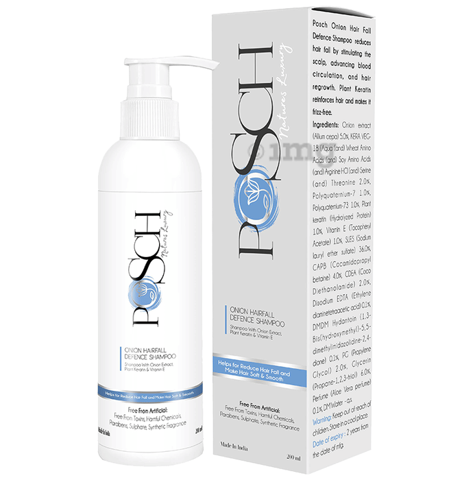 prevents split ends, hair breakage, and thin hair as it is rich in sulfur. The other nutrients within the onion prevent hair oxidation. Further, it regularly maintains the pH of your hair by preventing premature greying. Posch Onion Hair Oil is a natural hair care product. If you use it regularly, it will reduce hair breakage and make it healthier by nourishing it from the roots. As a result, even if you go outside, your hair will be protected from potential damage and, it will not get frizzy anymore as it usually does. It will effectively increase the volume of your hair prevent dandruff or any bacterial infections.