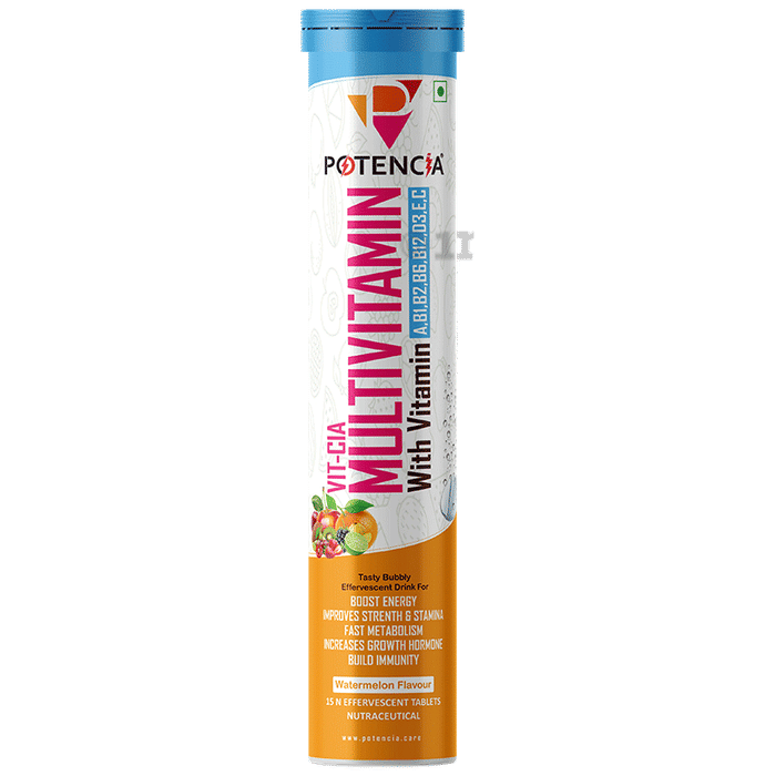 Potencia VIT-CIA Multi-Vitamin Effervescent Tablet Watermelon is a nutraceutical supplement designed to help provide a complete range of essential vitamins for energy, strength, and immune support. This tablet includes Vitamins A, B1, B2, B6, B12, C, D3, and E, as well as key minerals to help support physical stamina, metabolic health, and growth hormone balance. Suitable for daily use, this multivitamin can help offer a tasty and convenient way to maintain overall vitality and health.