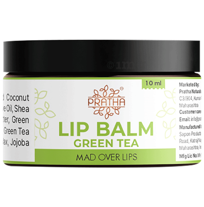 Pratha Lip Balm Green Tea is a skin care formulation containing Virgin Cold-Pressed Coconut Oil, Cold-Pressed Olive Oil, Shea Butter, Avocado Butter, Fig Seed Oil, Green Tea Oil and Extract, and botanical waxes. The presence of cold-pressed oils and plant butters may help support moisture retention and skin nourishment. Shea butter and avocado butter are sources of fatty acids that can help soften the skin's surface and assist in maintaining hydration. Green tea extract contains polyphenols, which may help protect lips from external exposure. This balm has a smooth texture supported by natural waxes such as candelilla, jojoba, and rice bran wax. The lip balm may be used for general lip care or as a base under lipstick.