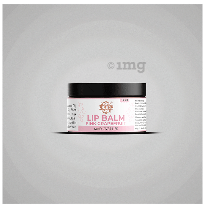 Pratha Lip Balm Pink Grapefruit is a lip care formulation enriched with Virgin Cold-Pressed Coconut Oil, Cold-Pressed Olive Oil, Shea Butter, Avocado Butter, Pink Grapefruit Oil, and Pink Grapefruit Extract. This botanical combination offers a naturally emollient base that may help support hydration and comfort for dry lips. Pink grapefruit extract, rich in fruit-based compounds, adds a refreshing element while supporting general lip care. Shea butter and avocado butter provide essential fatty acids that may help soften lips and reduce roughness. Natural waxes like candelilla, jojoba, and rice bran wax contribute to the balm's smooth consistency and stable texture. Formulated without petroleum, parabens, or artificial colours, it is suitable for daily use across all age groups.