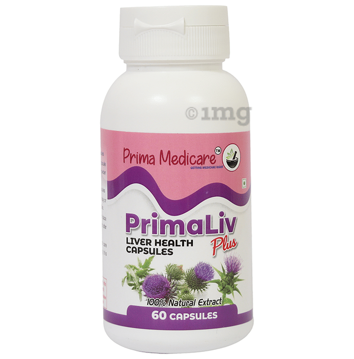 Prima Medicare Prima Liv Plus Capsule: It is a dietary supplement formulated with Silybum or milk thistle, a potent herb that supports healthy liver functions and encourages overall health. Milk Thistle works as a detoxifier and promotes the removal of toxins from the body. It is rich in antioxidants that protect the cells against chemical and age damage. It supports heart health and encourages normal cholesterol levels in the body. Key Ingredients: Milk thistle Key Benefits: