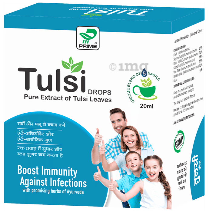 Prime Tulsi Drop is an ayurvedic tulsi drop with a unique blend of five kinds of basil or tulsi. Tulsi is known for its myriad medicinal properties and has antibacterial, antifungal, antipyretic, antioxidant, and antiseptic properties.