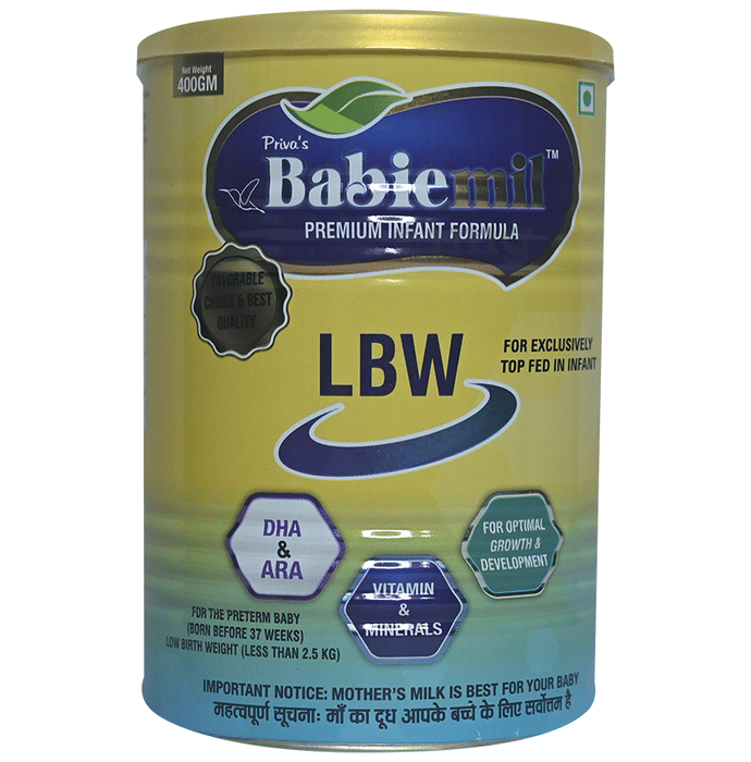 Priva's Babiemil LBW is a scientifically designed infant formula tailored for preterm infants (born before 37 weeks) and low birth weight babies (less than 2.5 kg). This formulation provides age-appropriate, balanced nutrition essential for optimal growth and development. With a 60:40 whey-casein protein ratio, a precise blend of DHA and ARA, and an array of critical vitamins and minerals, this formula can help support physical growth, cognitive development, digestive comfort, and immune system maturity. The carefully selected ingredients aim to provide comprehensive nourishment when infants are top-fed, in line with paediatric guidance.