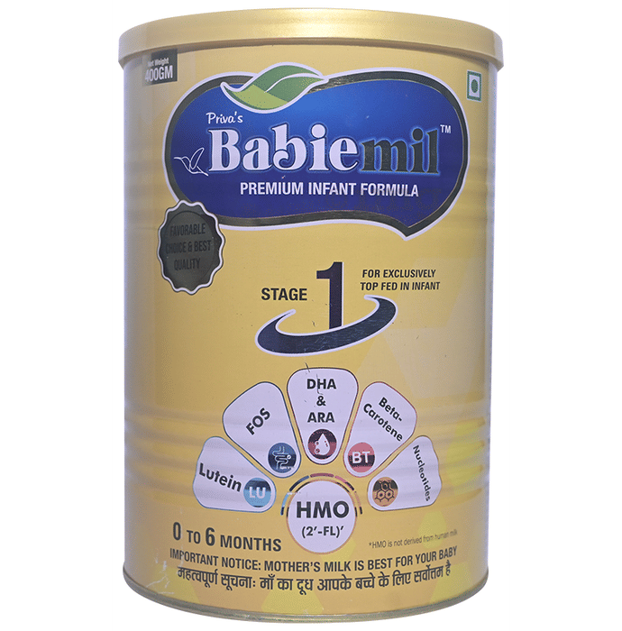 Priva's Babiemil Stage 1 Premium Infant Formula is a specialised nutritional formula developed for exclusively top-fed infants from birth to 6 months of age. It is designed to meet the age-appropriate dietary needs of growing babies when breast milk is insufficient or unavailable. This formula contains a carefully calibrated blend of essential nutrients such as proteins, fats, carbohydrates, minerals, and vitamins that can help support healthy physical and cognitive development. It also contains DHA, ARA, FOS, beta-carotene, nucleotides, and 2’-FL (HMO) — a specialised ingredient included for digestive and immune support. Babiemil can help complement nutritional requirements in infants who need additional feeding support under healthcare supervision. The inclusion of prebiotics, whey:casein ratio, and a complete vitamin-mineral matrix can help assist in immune readiness, digestive comfort, and brain and bone development. While this formula can be helpful in early infancy, it is important to remember that breast milk is best for babies and should be prioritised whenever possible.