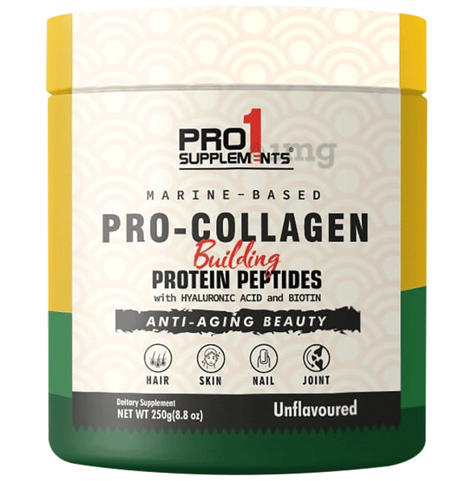 Pro1 Supplements Marine-Based Pro-Collagen Powder is a dietary supplement designed to help support overall skin, hair, nail, and joint health. It contains Hydrolyzed Marine Collagen Peptide Type I & III, enriched with Hyaluronic Acid, Vitamin C, and Biotin, which may help in maintaining skin elasticity, strengthening hair and nails, and supporting joint mobility. As collagen production in the body naturally declines with age, supplementing with marine collagen peptides may help contribute to maintaining skin hydration, supporting connective tissue health, and ensuring overall well-being. This unflavoured formula is GMO-free, gluten-free, sugar-free, and lactose-free to help make it suitable for a variety of dietary preferences.