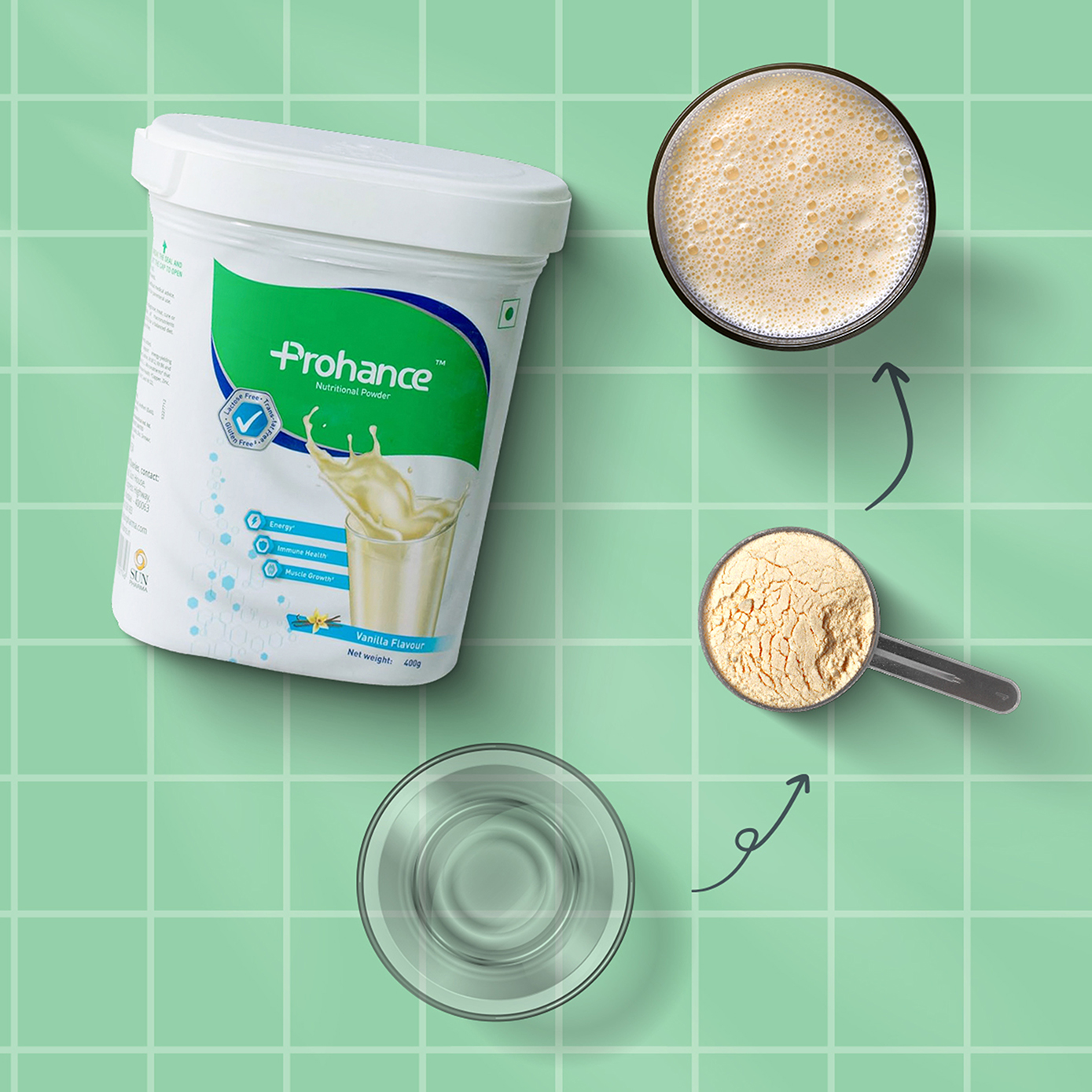 - Q. How do I consume this supplement? Prohance Protein Supplement Powder for Better Health and Immunity Vanilla can be consumed by mixing 2-3 scoops of powder in a glass of water or milk. It is recommended to consume it once or twice a day, preferably after meals.