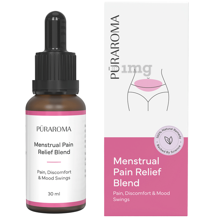 Puraroma Menstrual Pain Relief Blend is a topical blend formulated to support comfort and manage pain associated with abdominal or lower back tension. It contains essential oils like Fennel, Peppermint, Camphor, Cedarwood, Clove, and Ylang Ylang that may help relieve muscular discomfort with calming properties.