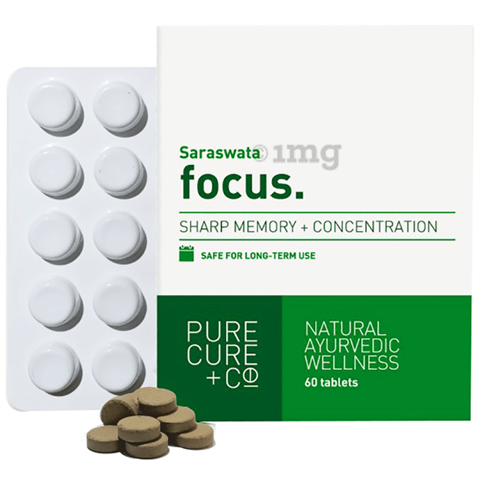 Pure Cure Saraswata Focus Tablet helps in enhancing focus, staying alert and increasing attention span. By optimizing the functioning of the brain, it also helps in achieving clarity of speech and boosts overall health and vitality.