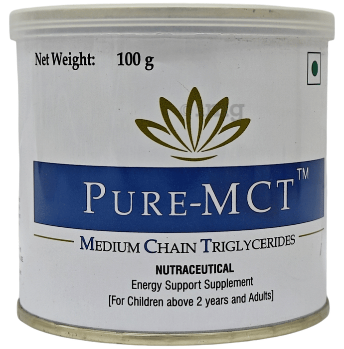 Pure Mct Powder is a nutritional supplement containing medium-chain triglycerides, maltodextrin, sodium caseinate, and antioxidants, which can help with the easy absorption of nutrients and provide instant energy. Medium-chain triglycerides can help manage weight by increasing calories in the diet after an illness or surgery.