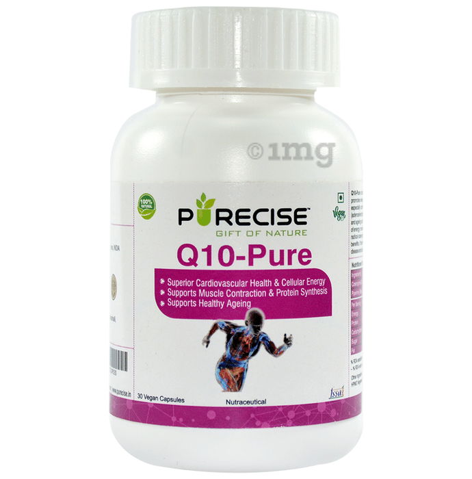 Purecise Q10 Pure Vegan Capsule contains fermented Coenzyme Q10 that helps support heart function and promotes energy production in the cells. It exists naturally throughout the body but is especially concentrated in the heart, liver and kidney.