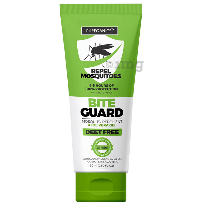 Pureganics Bite Guard Mosquito Repellent Deet-free with aloe vera gel is a blend of active eucalyptus, cajuput and saral combined. It keeps mosquitoes at bay, safe for the skin, and for regular use. It protects from mosquito-borne diseases like dengue, malaria, and chikungunya. Its active ingredients not only nourish and moisturize the skin but also provide complete 8-hour protection.