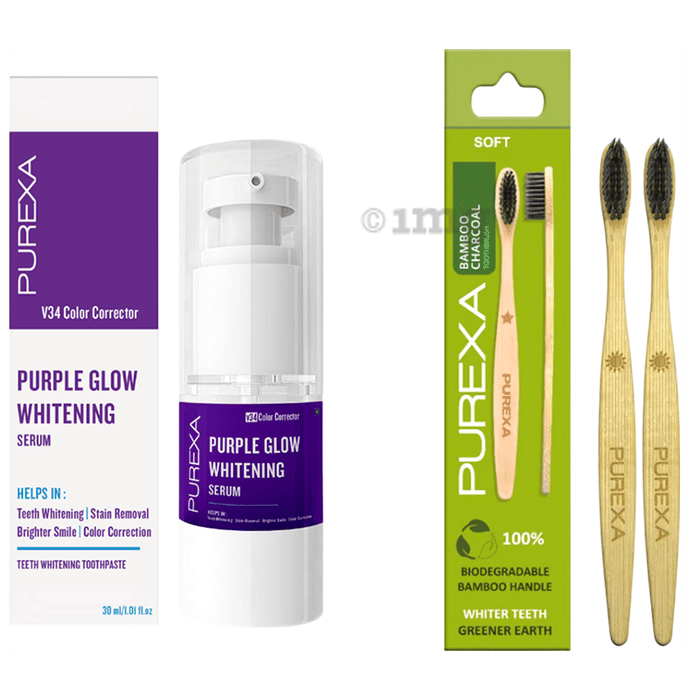 Purexa Combo Pack of Purple Glow Whitening Serum (30ml) and Bamboo Charcoal Soft Toothbrush (2)
