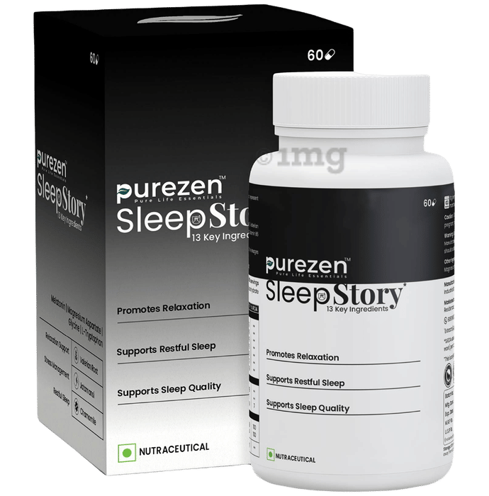 Purezen SleepStory Capsule is a thoughtfully crafted formula of 13 ingredients that may support restful sleep. It includes Valerian Root, Chamomile, and Passion Flower, which can help calm the mind. L-Theanine, Glycine, and L-Tryptophan may support relaxation and balance. Ashwagandha and Jatamansi can help ease stress, while Magnesium, Vitamin B6, and Vitamin D3 may help maintain muscle relaxation and circadian balance. Piperine is included to support nutrient absorption, making this capsule a convenient choice for those looking to support natural sleep quality.