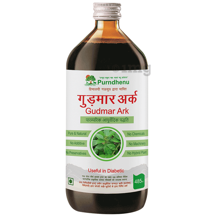 Purndhenu Gudmar Ark is a natural supplement crafted from the key ingredient gudmar. This Ayurvedic elixir offers a range of benefits for overall well-being. It supports healthy blood sugar levels and overall wellness. It is suitable for all.