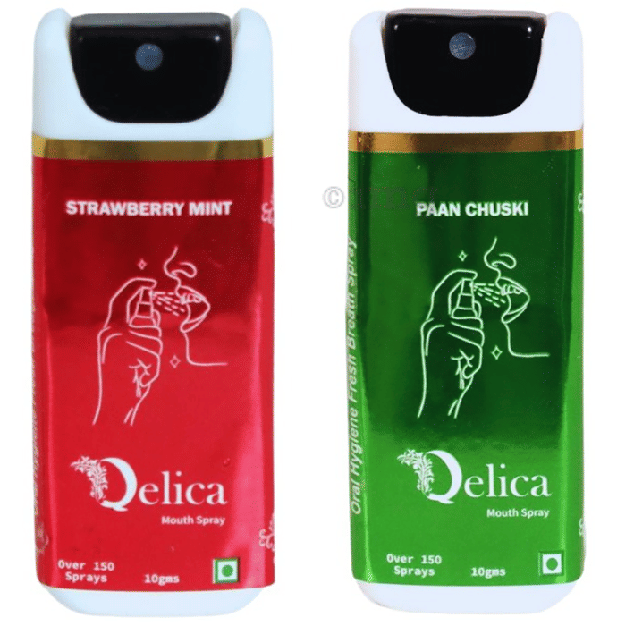 Qelica Mouth Spray (10gm Each) Strawberry Mint & Paan Chuski has the goodness of menthol oil and clove oil. It can keep your mouth fresh and may fight bad breath. It may clear nostrils and refresh your throat.