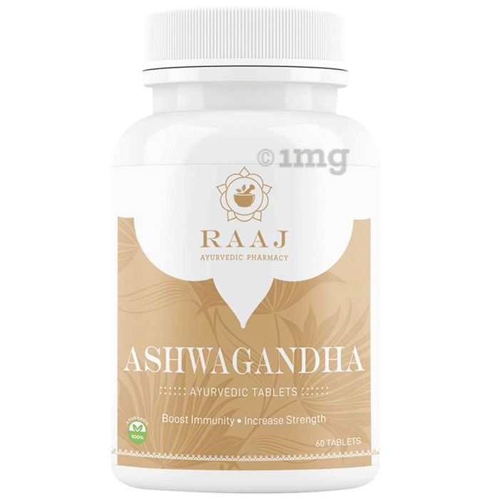 Information about Raaj Ayurvedic Pharmacy Ashwagandha Ayurvedic Tablet | Stress Relief | Rejuvenates Mind & Body | Improves Strength & Energy | General Wellness