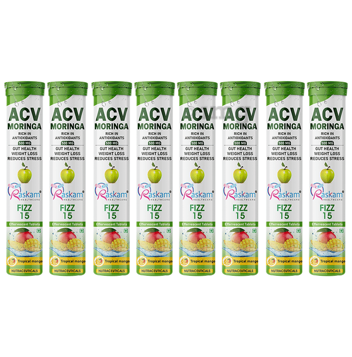 Information about Raskam Healthcare ACV Moringa 500mg Effervescent Tablet (15 Each) Tropical Mango
