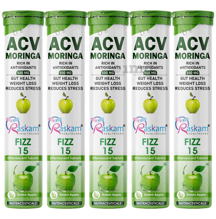 Information about Raskam Healthcare ACV Moringa Fizz Effervescent Tablet (15 Each) Green Apple