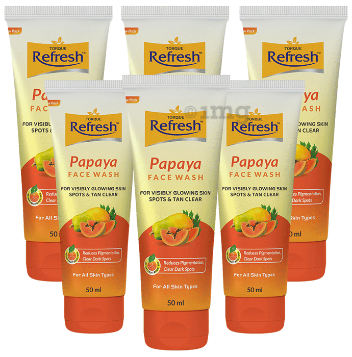 Refresh Papaya Face Wash Torque refresh papaya extracts for glowing skin, spots and tan clear face wash is power-packed with the goodness of real papaya extracts. Keep your skin protected against UV rays and retain your natural glow at the same time. Papaya helps in removing dead skin cells which clog the skin pores, thus reducing acne and inflammation. The rich papain enzyme in the fruit acts as a natural exfoliating substance that removes impurities and clears dark spots, unfolding clear, rejuvenated and glowing skin.