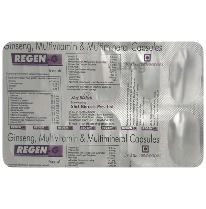Regen-G Capsule is a dietary supplement with multiple health benefits. It can be beneficial in improving the function of your brain. It can be effective in assuaging inflammation and discomfort. The composition aids in reducing the risk of cell damage and helps boost immunity.