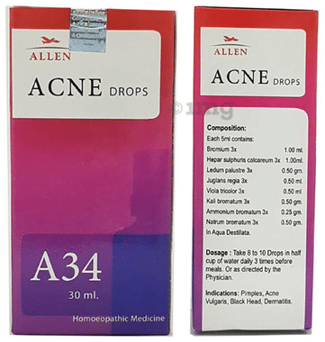 Indication: Blotches and primples on face yellowish skin waxy. Yellowish white flashes of heat to cheeks. Acne on face in young age. Each 5 ml. Contains Calcarea Phos - 6 0.50 ml Asterias - 6x 0.50 ml Kali Brom - 6 0.50 ml Carbo Ani - 6X 0.50 ml Arse Brom - 6 0.50 ml Hydrocotyle A. - Q 0.50 ml Phos Acid -1x 0.50 ml Berberis Aquifolium - Q 0.50 ml Sulpur Iod - 6X 0.50 ml Calcarea Pic . - 6 0.50 ml Mode of Action: Calcaria Phophorica 6x: Coppery face full of pimples. Acne in the face, red pimples.shooting pains on being touched.