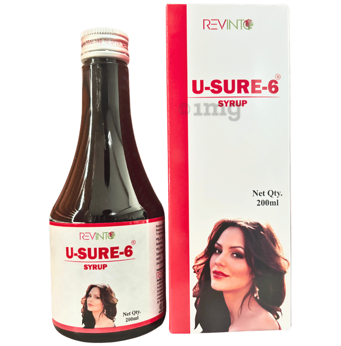 Revinto U-Sure 6 Syrup is an Ayurvedic proprietary formulation containing a wide spectrum of botanical extracts such as Lodhra, Ashwagandha, Bala, Musli, Punarnava, Manjistha, Shatavari, Brahmi, and several other herbal ingredients. This combination can help support women’s wellness and general vitality. The blend of plant-based extracts can contribute to maintaining internal balance, nourishment, and overall well-being.