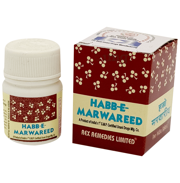 Rex Habbe Marwareed Tablet Rex Habbe Marwareed Tablet is beneficial for female health. It is an Unani medicine. It is useful for leucorrhea and general debility in females. Key Ingredients: Suhaga Biryan,Mazoo,Kuchla Mudabbar,Mastagi Key Benefits: