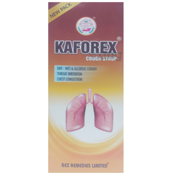 Rex Kaforex gives prompt symptomatic relief in dry, sputum and whooping cough. It comes with demulcent, anti-inflammatory and decongestant properties that soothes down irritated mucosa of the throat and upper respiratory tract. It is also useful in influenza, cold, constipation and fever.