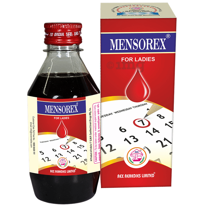 Rex Mensorex Syrup is a herbal remedy made using natural products that is useful in regulating the secretory functions of ovaries in women. It is an effective tonic that not only regulates abnormal menstrual periods but also eliminates distress and pain before and during menstruation. It is also indicated for toning up the nerves and act as an excellent uterine tonic.