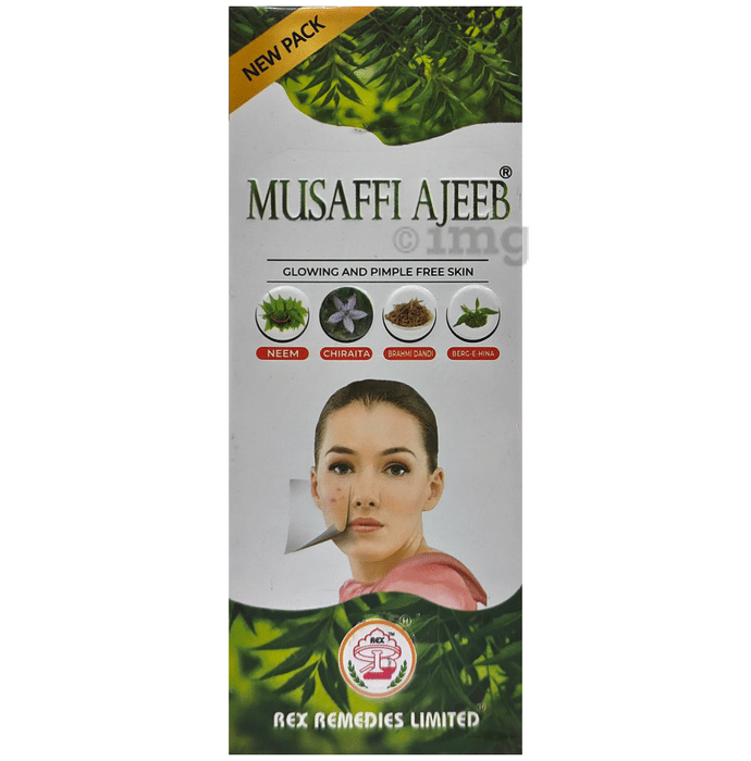Rex Musaffi Ajeeb is a unani medicine that is used as a blood purifier. It corrects the digestive system and relieves constipation. It helps maintain skin health and reduces pigmentation.