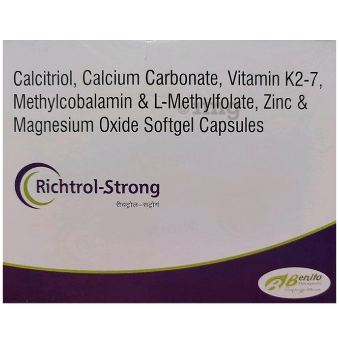 Richtrol Strong Capsule is a multivitamin nutritional supplement that helps to improve overall health. Enriched with minerals and essential dietary components, the tablet is indicated for managing vitamin D deficiency, anaemia, age-related vision loss, osteoporosis, acne and diarrhoea.
